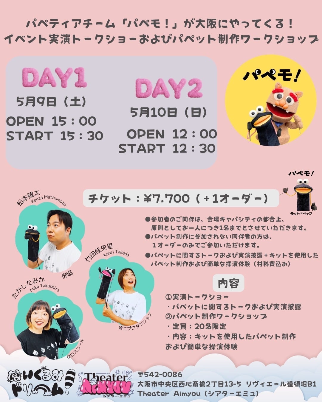 チケット:5月9日(土)パペティアチーム「パペモ!」が大阪にやってくる!イベントDAY1